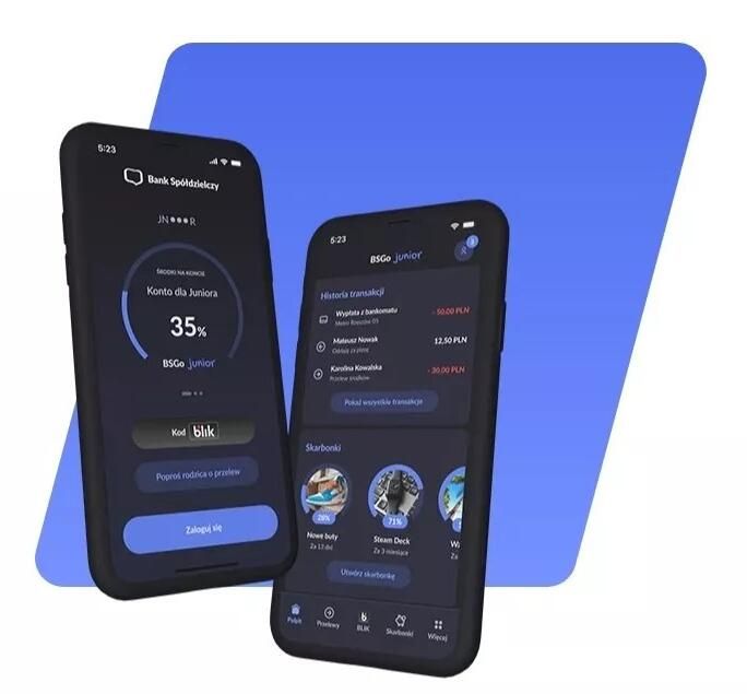 Co oferuje serwis internetowy oraz aplikacja BSGo Junior? dostęp do rachunku, zarządzanie nim, wykonywanie przelewów; płatności BLIK; prośby o przelew do rodzica; doładowania telefonów; zarząd… -