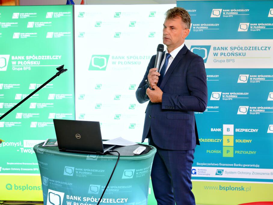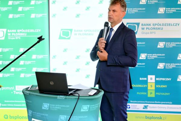 Poinformował również zebranych o inwestycjach prowadzonych przez Bank, w szczególności budowie Oddziału Banku w Załuskach i Oddziału Banku w Sochocinie.