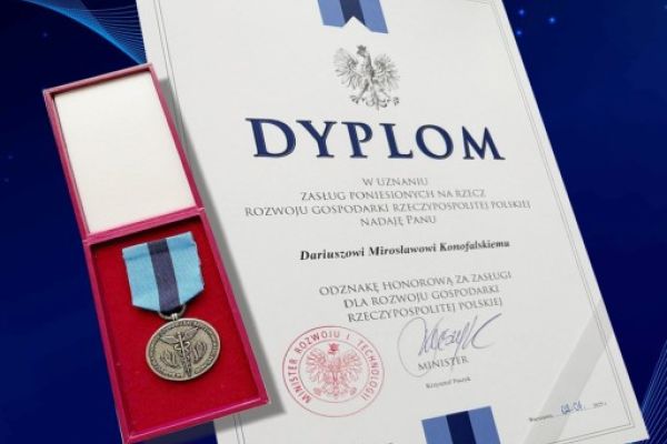 Z dumą informujemy, że Prezes Zarządu Banku Spółdzielczego w Płońsku, Pan Dariusz Konofalski, został uhonorowany Odznaką Honorową "Za Zasługi dla Rozwoju Gospodarki Rzeczypospolitej Polskiej", przyznawaną przez Ministra Rozwoju i Technologii.