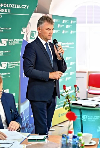 W swoim wystąpieniu Prezes Zarządu Dariusz Konofalski zaprezentował sprawozdanie z działalności Banku, akcentując stabilność finansową i odpowiedzialne zarządzanie, które doprowadziły do najlepszego wyniku w historii. Prezes przedstawił również priorytety na najbliższe lata, w tym rozwój sieci oddziałów – aktualnie trwa budowa nowych placówek w Załuskach i Sochocinie.