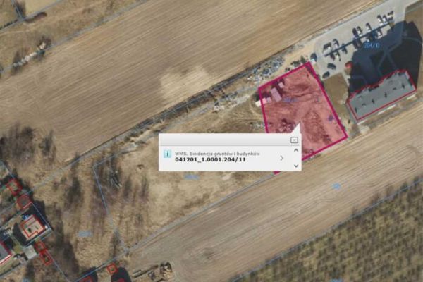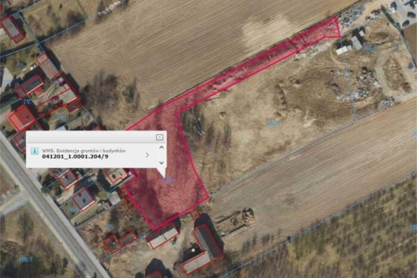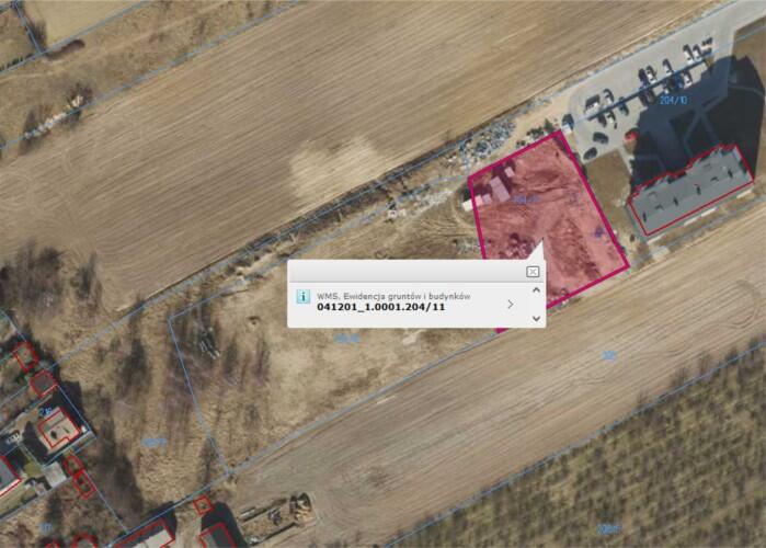 Działka nr 204/11 o pow. 0,1823 ha jest w zdecydowanej większości niezabudowana, nieużytkowana, przy północnej granicy znajduje się małogabarytowa stacja transformatorowa o pow. zabudowy około 5 m2 wraz z przewodami elektroenergetycznymi oraz kontener tymczasowy. https://mapy.geoportal.gov.pl/imap/Imgp_2.html?identifyParcel=041201_1.0001.204/11